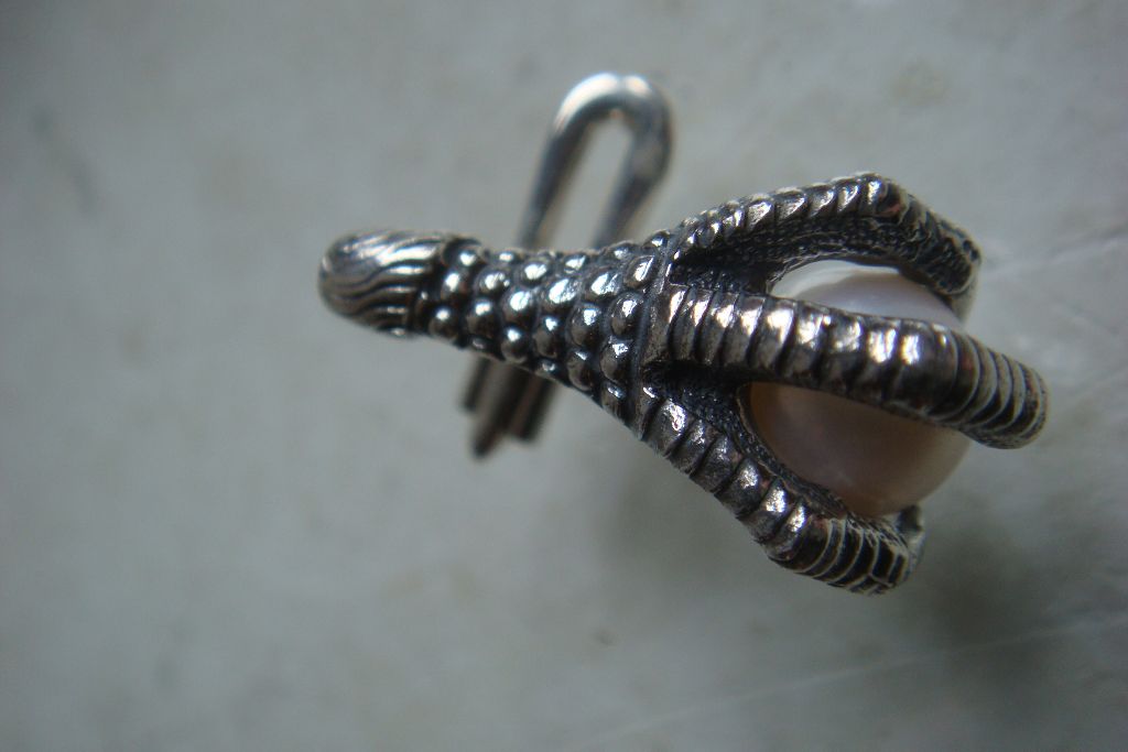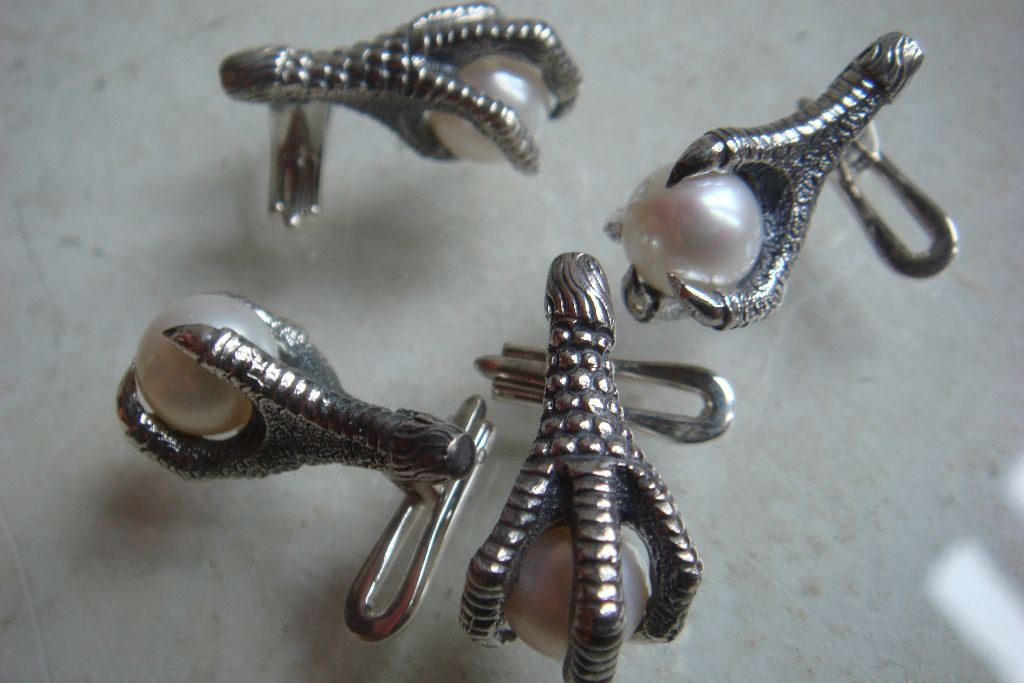 Frack / Smoking Knöpfe in Form einer Adlerkralle mit Flußperle hier abgebildet in massiv 925er Silber